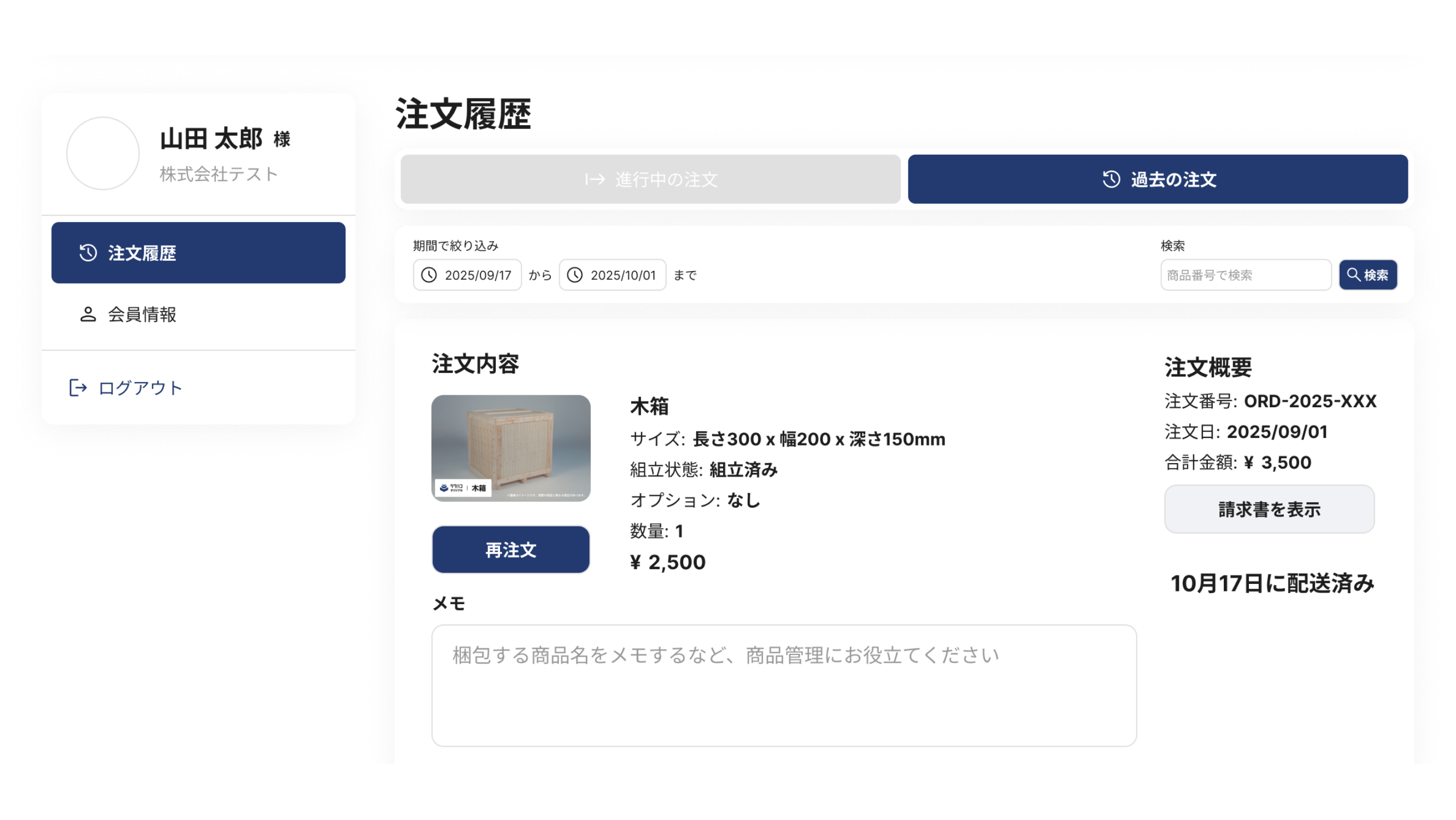 担当者が変わっても、同じ品質・同じ仕様でスムーズに手配できます。