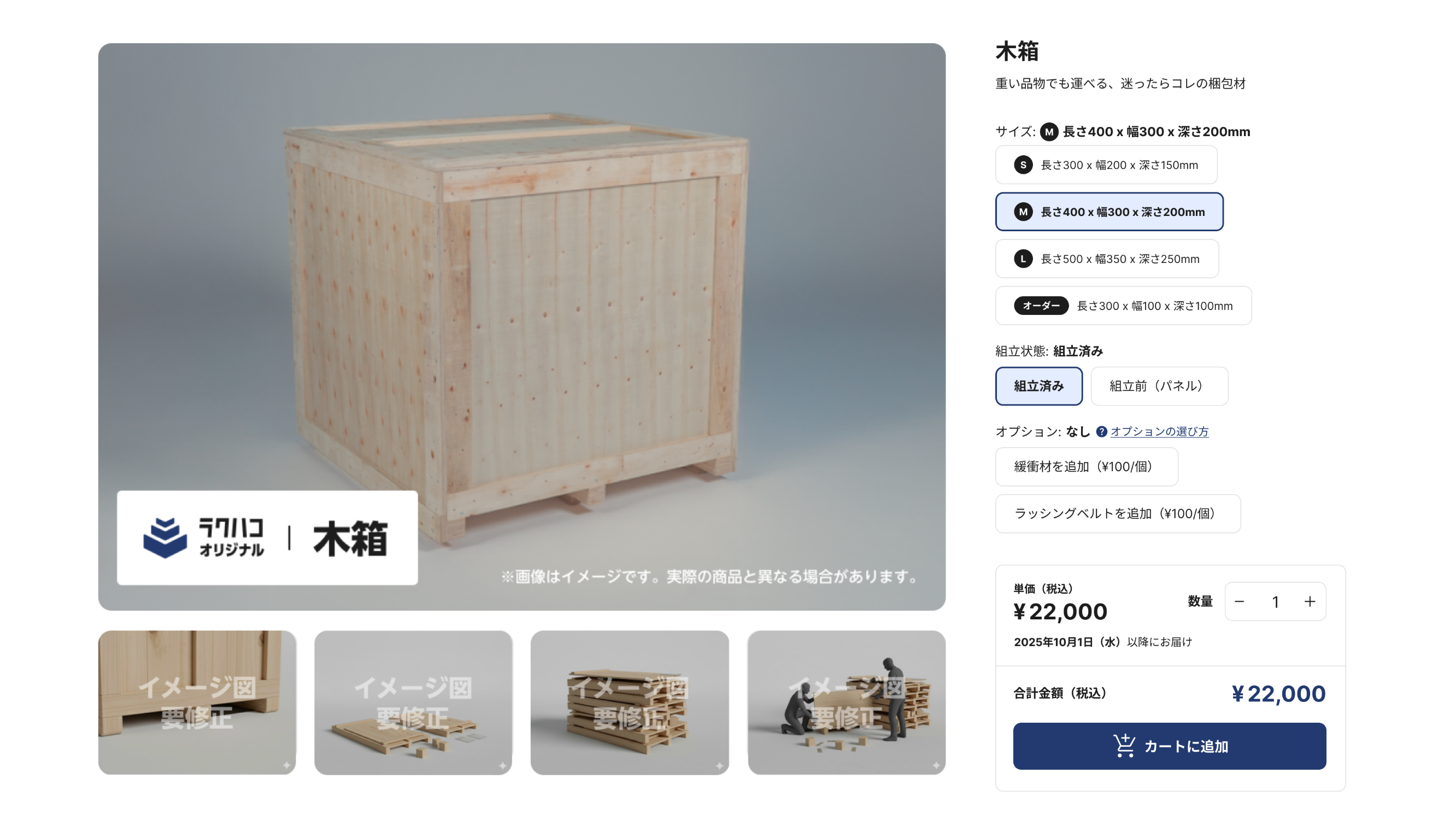 サイズを入力するだけで、瞬時に最適な梱包仕様と価格を提示します。